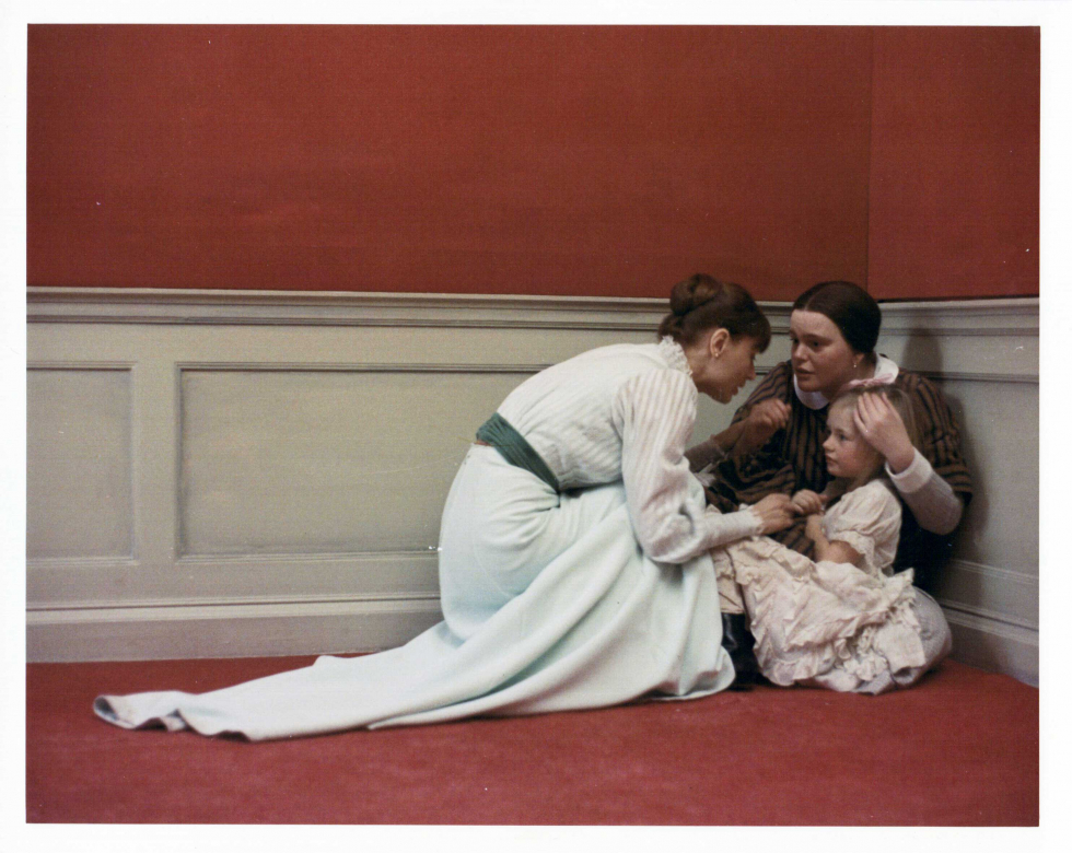 Agnes (Harriet Andersson), Anna (Kari Sylwan) och Marias dotter (Linn Ullmann) i en bortklippt scen.